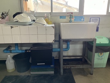 มีแม่บ้านเป็นผู้ดูแลทำความสะอาดถังดักไขมัน จำนวน 1 ครั้งต่อสัปดาห์ และตรวจสอบสภาพความพร้อมใช้งานของถังดักไขมัน