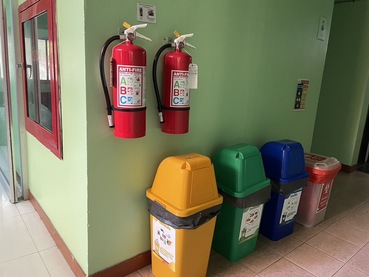 (1) มีการคัดแยกขยะตามประเภทขยะที่เกิดขึ้นจากกิจกรรมภายในสำนักงาน และจัดวางถังขยะตามพื้นที่ทำงานต่างๆ อย่างเหมาะสมทุกจุดที่สุ่มตรวจสอบ
