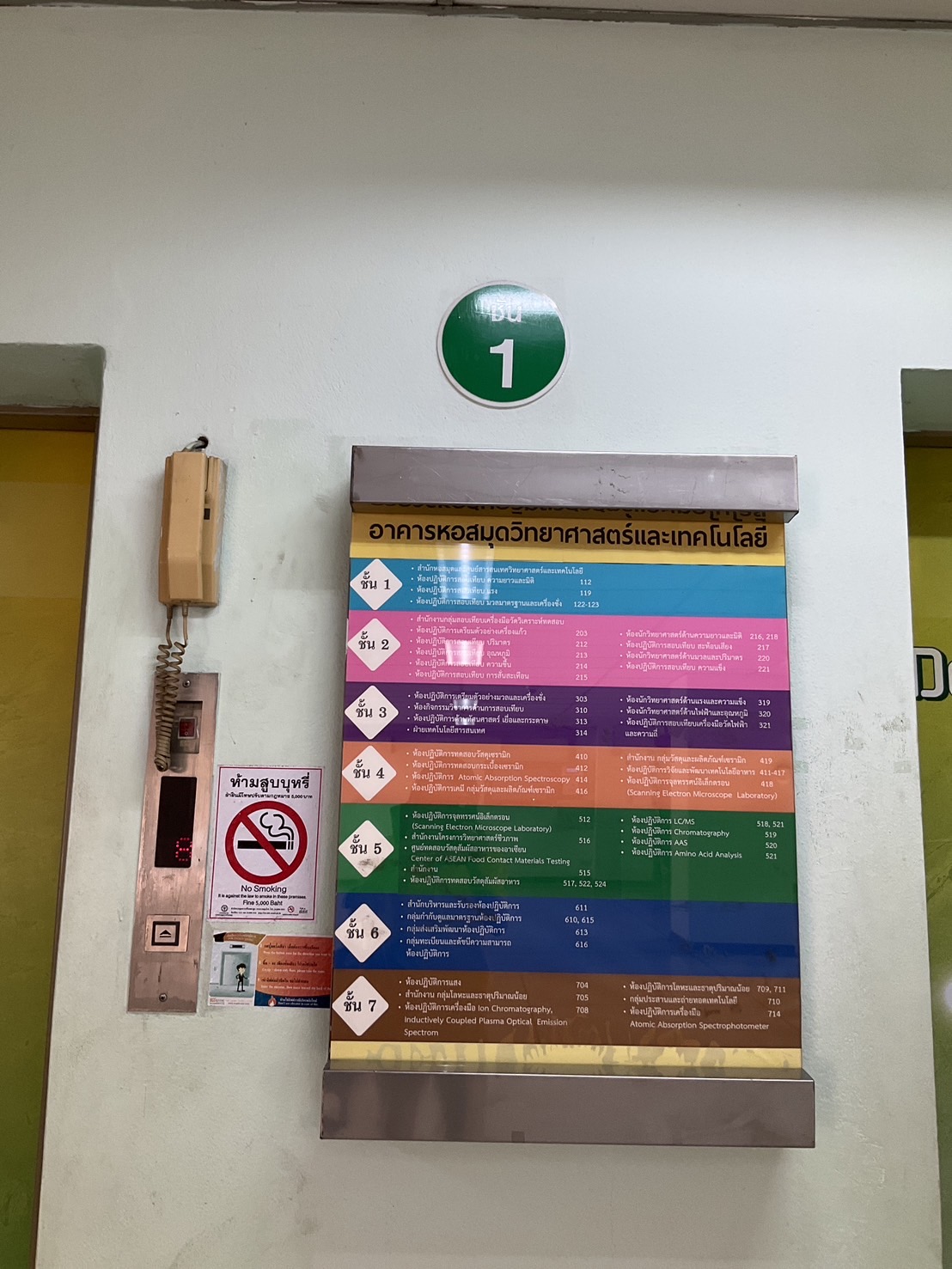 มีข้อความ “งดสูบบุหรี่ในอาคาร” ติดประกาศเพื่อแจ้งข้อควรปฏิบัติขณะเข้าใช้บริการ