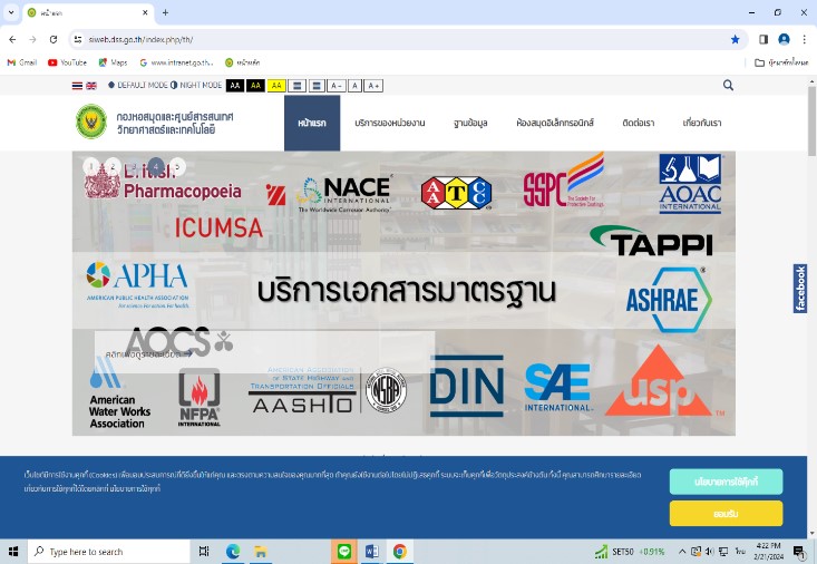 กองหอสมุดฯ มีบริการทรัพยากรสารสนเทศทั้งในรูปสิ่งพิมพ์ อิเล็กทรอนิกส์และฐานข้อมูลออนไลน์ เพื่อให้สามารถเข้าถึงสารสนเทศได้อย่างสะดวก รวดเร็ว ผู้รับบริการได้ข้อมูลที่ทันสมัยและเป็นปัจจุบัน เช่น ASTM, JIS, United States Pharmacopeia - National Formulary (USP-NF), Official Methods of Analysis of AOAC INTERNATIONAL Online, ฐานข้อมูล BSOL (British Standards Online) ซึ่งเป็นฐานข้อมูลออนไลน์รวบรวมเอกสารมาตรฐานต่าง ๆ เช่น British Standards (BS), Europeans Standard (EN), International Organization for Standardization (ISO) ฯลฯ จึงได้จัดให้มีการบริการจัดหาเอกสารฉบับเต็มด้านวิทยาศาสตร์และเทคโนโลยีแก่ผู้รับบริการที่สนใจใช้สารสนเทศเพื่อวิเคราะห์ทดสอบ ศึกษาค้นคว้า วิจัยและพัฒนา การขอรับการรับรองมาตรฐาน ฯลฯ โดยกองหอสมุดฯ ได้พัฒนารูปแบบการชำระเงินค่าบริการทางออนไลน์ผ่านธนาคาร หรือแอปพลิเคชัน Mobile Internet banking ด้วยคิวอาร์โค้ด (QR Code) และเจ้าหน้าที่จะจัดส่งเอกสารสารสนเทศทางไปรษณีย์ ตลอดจนมีการแจ้งหมายเลข Tracking Number เพื่อให้ผู้ใช้บริการสามารถตรวจสอบสถานะจัดส่งเอกสาร และจัดส่งแบบประเมินความพึงพอใจออนไลน์ให้ผู้ขอรับบริการตอบกลับทางอีเมล ซึ่งการพัฒนากระบวนงานดังกล่าวฯ ช่วยอำนวยความสะดวกให้กับผู้ขอรับบริการที่ต้องการเข้าถึงองค์ความรู้ด้านวิทยาศาสตร์และเทคโนโลยีช่วยลดระยะเวลา และค่าใช้จ่ายในการเดินทาง