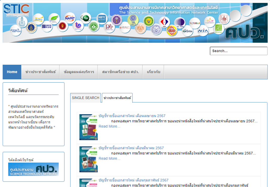 7. เว็บไซต์ศูนย์ประสานงานสารนิเทศสาขาวิทยาศาสตร์และเทคโนโลยี (ศปว.) (http://www.sptn.dss.go.th/scitech)