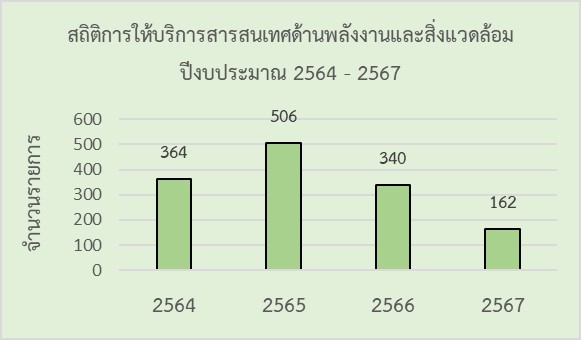 โดยในปี 2567 มีจำนวนการยืมหรือการใช้ประโยชน์ทรัพยากรสารสนเทศด้านสิ่งแวดล้อม 162 รายการ (ข้อมูล ณ วันที่ 20 พ.ค.67) ตามเอกสารแนบ GL-3.2.1(3) สถิติการการยืมหรือการใช้ประโยชน์ทรัพยากรสารสนเทศ ปี 2567