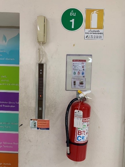 กองหอสมุดฯ จัดชั้นวางและจัดวางสารสนเทศให้เป็นระเบียบ มีการจัดพื้นที่บริการให้มีความปลอดภัยโดยมีการติดตั้งสัญญาณไฟฉุกเฉินและติดตั้งถังดับเพลิงไว้ทุกชั้นบริการ และมีการตรวจสอบสภาพให้พร้อมใช้งานเป็นประจำ
