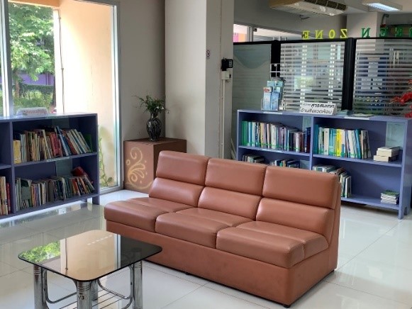มีการจัดพื้นที่ให้บริการ พื้นที่รับรอง ให้ดูสะอาด สวยงาม เป็นระเบียบ สอดคล้องกับการเป็นห้องสมุดสีเขียว